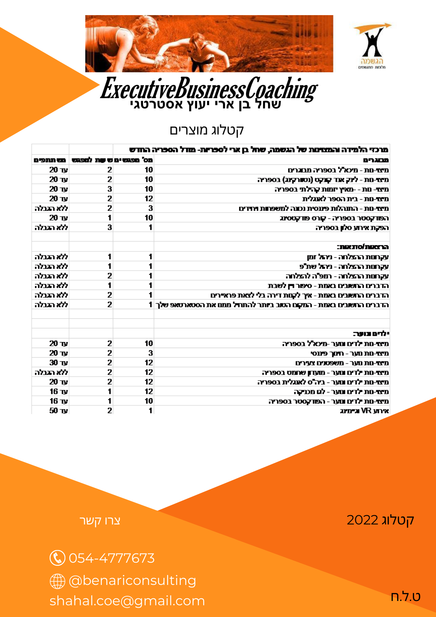 •הדרכה: –הדרכות פנים ארגוניות לקבוצות / אימון לבכירים ומנהלים